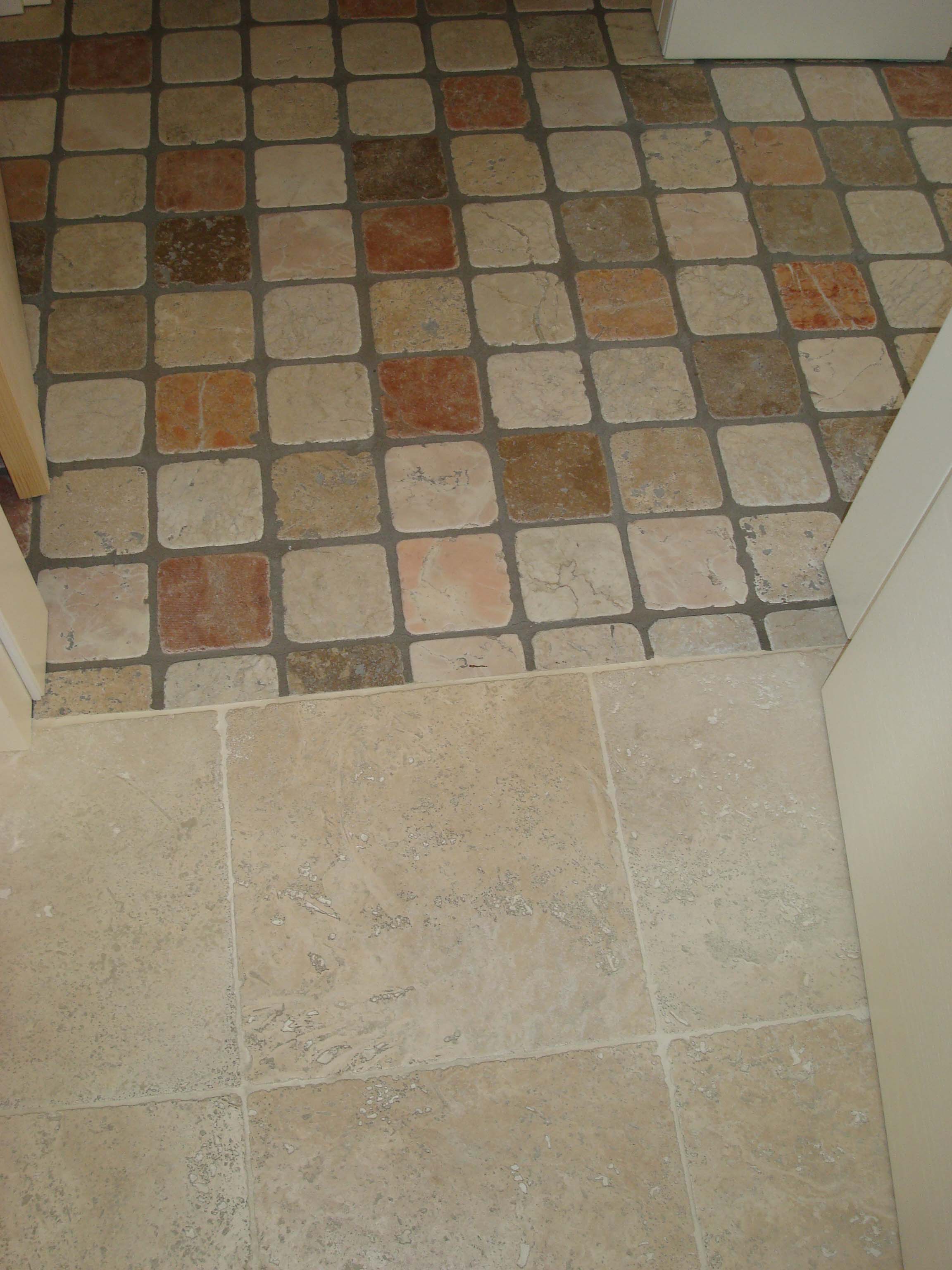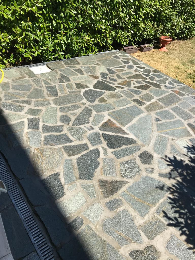 PAVIMENTO IN TRAVERTINO E SASSI DEL PIAVE