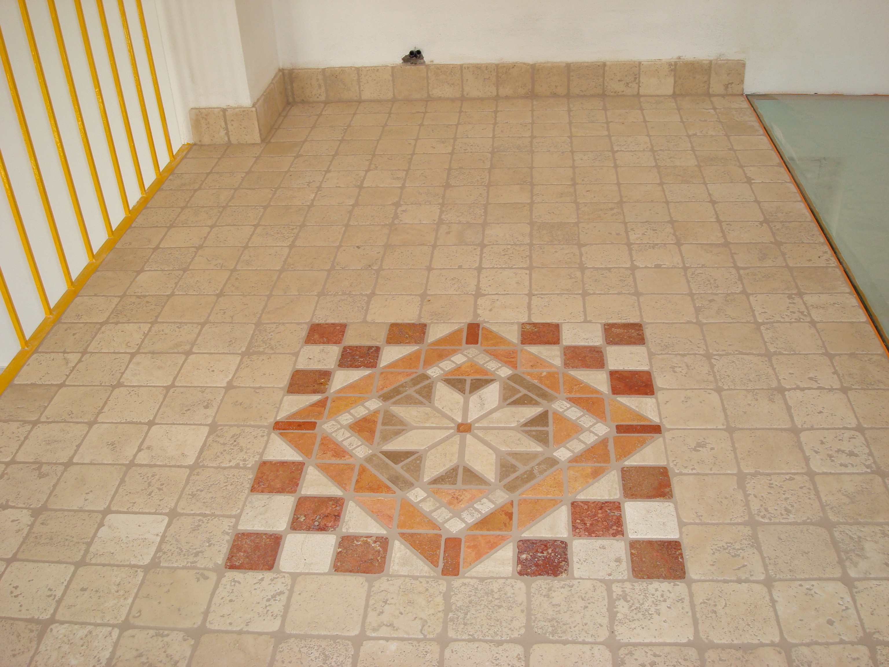 PAVIMENTO IN TRAVERTINO CON ROSONE AL CENTRO